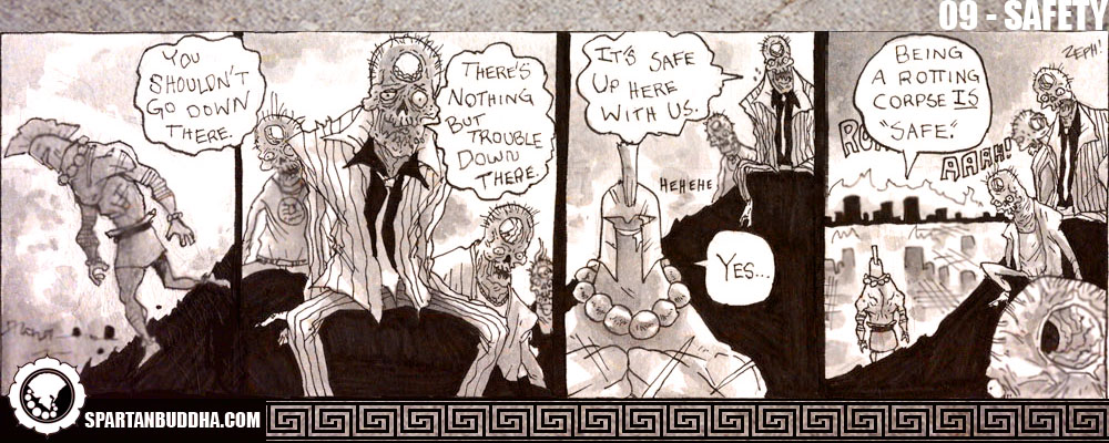 The best way to be safe is to do absolutely nothing. Any time you do SOMETHING you take the risk of twisting you ankle, losing your paycheck or being mauled by a bear. It’s the way of the ZOMBIE, the living dead. Being a dead man isn’t exciting but it’s safe and comfortable. Quietly rotting away like a walking pile of trash ain’t cool. You know what’s cool? Skydiving, nunchuck fights with ninjas. Or whatever. Zombies suck.